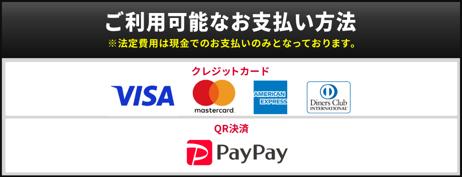 お支払いは現金の他、カードやPayPayも取り扱いしています!※法定費用は現金でのお支払いのみとなっております。ご容赦下さい。